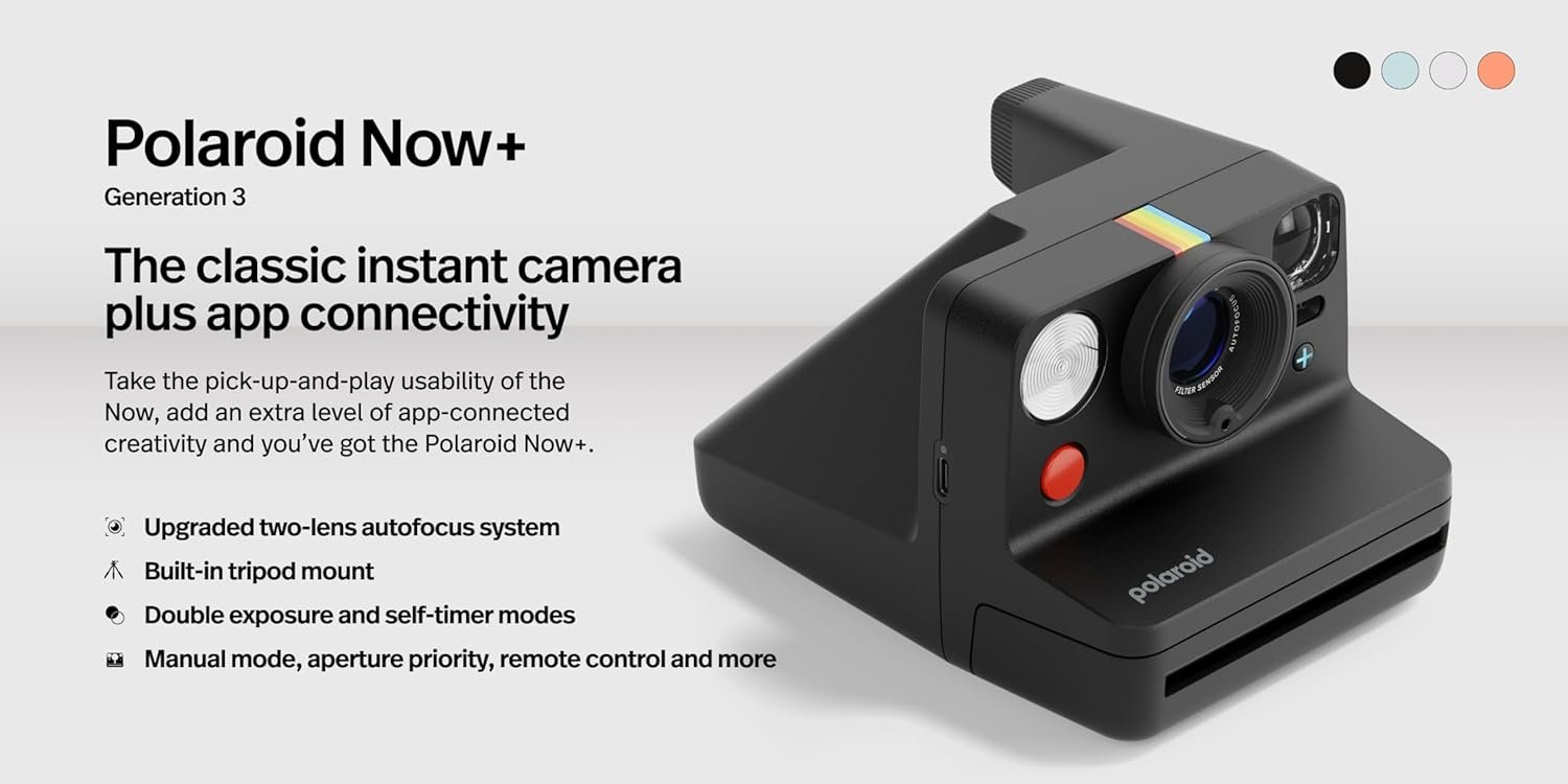 • POLAROID NOW+: The Polaroid Now+ Generation 3 Instant Camera is the classic analog instant camera that easily connects to the Polaroid app via Bluetooth to unlock so much more.